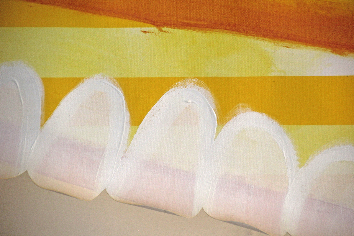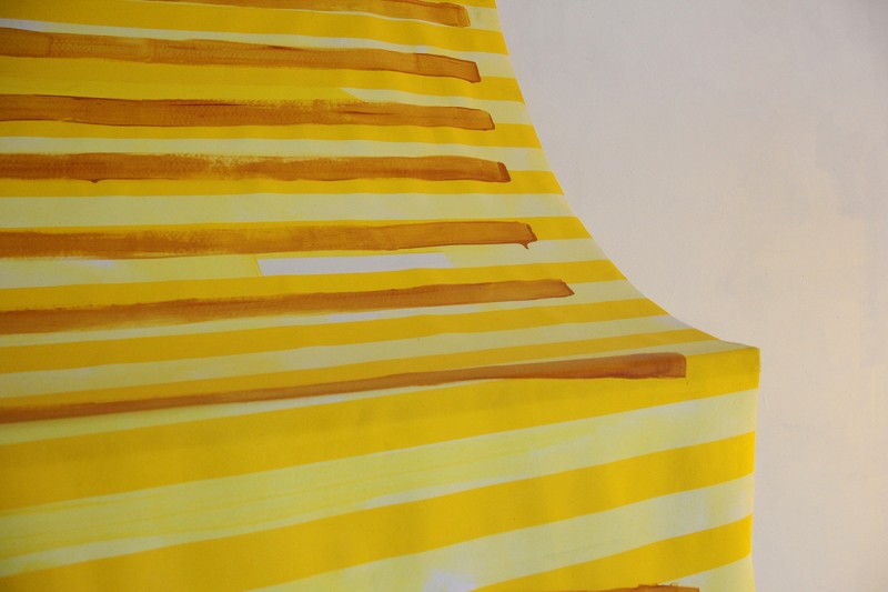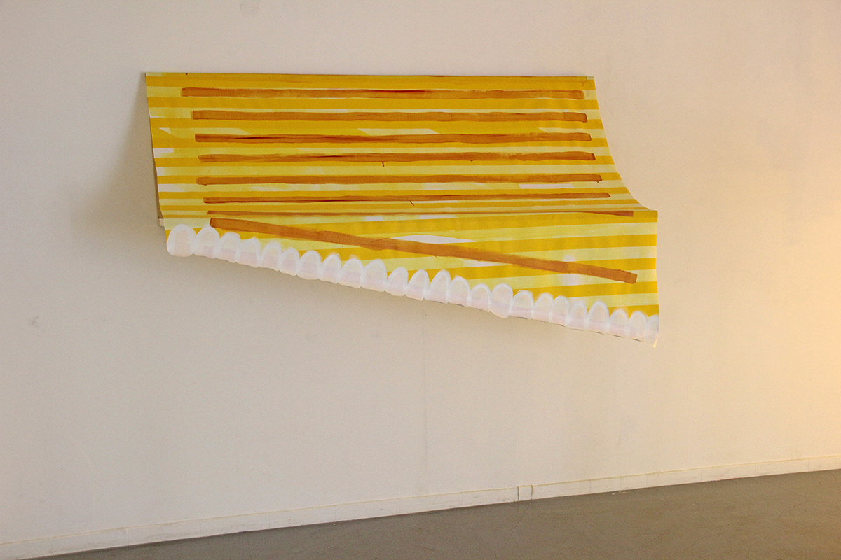 « Jusqu’ici tout va bien », peinture acrylique sur tissu montée sur structure en bois, 60 x 120 x 202 cm, 2020.
